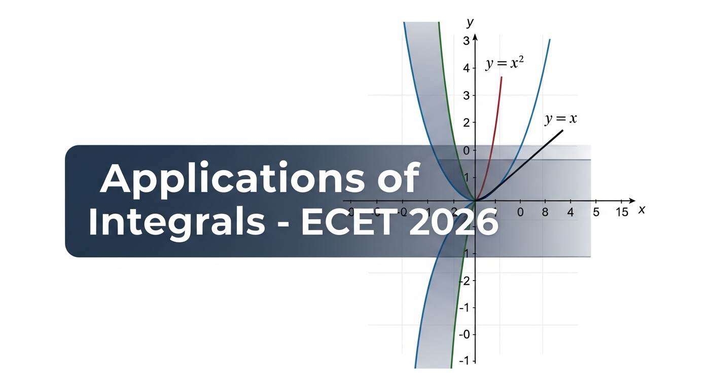 In ECET 2026 Mathematics, Applications of Integrals is one of the most important calculus topics. It mainly deals with finding areas under curves and areas between two curves. These questions appear frequently and are easy-scoring if you understand the geometry and integration concepts.