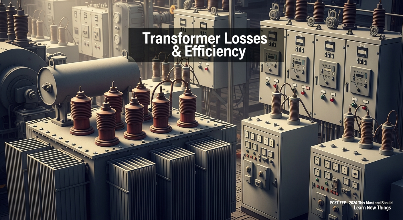Transformer losses and efficiency questions appear in every ECET because they test your understanding of core + copper behavior — the heart of power systems.